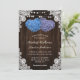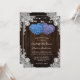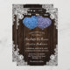 Estas rústicas invitaciones a bodas con flores moradas y azules, con dos flores de hortensias en forma de corazón sobre un fondo de madera de granero adornado con encaje floral blanco y luces de cuerda, son perfectas para invitar a sus invitados a su fiesta de bodas rústica morada y azul. Elementos coincidentes disponibles.
