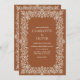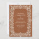 El rústico fondo de invitación a la boda marrón de terracota con elegante borde de marco floral blanco, perfecto para imprimir moda boho a petición de tarjetas.