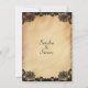 Aspecto romántico de encaje negro en un área rústica. Ponga los nombres de la novia y del Groom por un lado, dándole a sus invitaciones un ambiente menos formal. Por otro lado, la información pertinente del boda añade un toque clásico. Al hacer las invitaciones, compruebe tres veces la ortografía y las fechas.