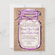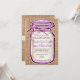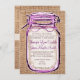 Esta rústica invitación a una boda campestre presenta un diseño de tarro de albañil con un tinte morado y una proa de tortuga alrededor de ella, encima de un diseño de yute de burlap vintage impreso. La burpúa y el twine son sólo diseños impresos, no tela burlap o cuerda de twine. Son perfectas para cualquier boda rústica de condado, sobre todo las que usarán tarros de albañil y burlap en su decoración boda y decoración de la recepción de bodas. Estos son especialmente buenos para las novias que utilizan el color púrpura en sus colores bodas. Esta plantilla de invitación a la boda se puede personalizar con su propio texto de invitación a la boda. Si necesita añadir más líneas de texto o cambiar el color o estilo del tipo de letra, simplemente utilice el botón "Personalizar". Tarjetas RSVP matrimoniales disponibles por separado para su Boda Mason Jar: