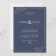 Descubra el escenario de su boda o evento con esta elegante invitación en azul marino, con una tipografía moderna y un diseño monocromo.