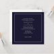 Simple Invitación a la Boda Azul Oscura con cuadrados dobles y escritura gris, esta invitación puede ser usada para cualquier Ocasión Especial. Esta invitación está disponible en marfil, blanco y azul oscuro *Nota - Marca de agua PS en el lado inverso, fácilmente extraíble.