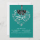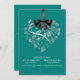 Esta magnífica y elegante invitación a la boda presenta una forma cardíaca llena de delicadas flores blancas y un lazo y arco gráfico satinado negro. Moderno y romántico, sin duda será el escenario para su día especial. Fácilmente personalizado. Muchos colores para elegir. (pavo real)