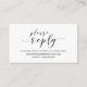 Esta es la elegante y moderna tarjeta web de RSVP en línea, Black calligraphy Script, para la respuesta de la invitación a la boda, o la tarjeta de clausura de la celebración del fiesta. Puede cambiar los colores del tipo de letra y agregar los detalles del boda en el tipo de letra / letra correspondiente. Teesha Derrick