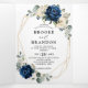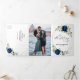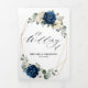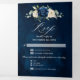 Invitación a boda triplicidad floral azul marino oscuro con RSVP y tarjeta de detalles con elegante ramo de azul marino, azul real , blanco , dorado, marfil de champán, rosa de color de color negro , hishidratea, ranunculus, peonía, brotes de flores y hojas de eucalipto verde salado y acuarela elegante con marco geométrico neutro redondo purpurina. Comuníquese conmigo para obtener ayuda sobre la personalización o si necesita cualquier otro producto con este diseño