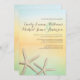 Esta sencilla invitación a la boda en la playa cuenta con un lavado de colores tenues inspirado en el océano y una superposición de estrellas de mar adornando la esquina. Colores personalizados disponibles bajo petición.
