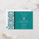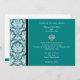 Clásica y de moda, personalizable completo y invitación a la boda personalizada en negro y verde azulado damasco. Deja que tu estilo brille en estas invitaciones. Coincidir guarda las tarjetas de fecha y los imanes están disponibles en esta tienda.
