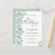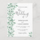 Una invitación botánica de bodas de moda en blanco y verde. Un fondo blanco de moda en la parte delantera. Decorada con vegetación acuática, follaje, manantiales. Guión moderno de gran tamaño con letra, tipografía con el texto: El boda de. Plantillas para nombres y detalles del boda. Texto gris oscuro. Fondo: fondo verde claro. Sugerencia: Si no desea que se vea como una postal, haga clic en personalizar, vaya a la parte posterior y quite el separador y el sello postal.
