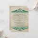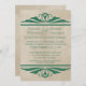 Elegante y moda Elegante Invitación a la Boda Deco con un remolino de estilo Art Déco que florece los bordes en verde oscuro y un fondo texturado vintage en un beige suave. Esta invitación tiene un encanto rústico y mantiene un agradable estilo sofisticado. Ideal para un boda con temática vintage de los años 20. Fácil de personalizar, simplemente agregue los detalles de su boda en los campos de texto proporcionados. Haga clic en "Personalizar" para buscar más opciones de personalización, como cambiar fuentes o colores de texto.