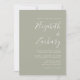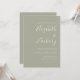 Esta sencilla y moderna invitación a la boda incluye texto blanco sobre un fondo verde sabio. Añada los nombres de la novia y del novio en una caligrafía elegante de escritura a mano y los detalles en letra sans serif. El reverso es una sombra de verde salvia macizo.