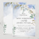Esta romántica invitación a la boda incluye una hermosa acuarela de color azul floral con eucaliptos verdes. Crea tu invitación perfecta con estas plantillas prediseñadas, puedes personalizarla fácilmente para que sea la tuya única y enviarle a los invitados una invitación de boda que exprese perfectamente tu estilo. Ver el vínculo de colección en esta página para ver todos los elementos coincidentes de este hermoso diseño