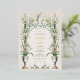 Esta invitación a la boda es una celebración de la elegancia victoriana, mostrando la serena belleza de las lilas de la calila en pleno florecimiento. Una urna clásica en tonos azules y crema, adornada con delicados azulejos de oro, es la pieza central, desde la que las lilas suben hacia un armonioso monograma de vid verde. La composición está equilibrada con un par de palomas pacíficas en la base, simbolizando amor y fidelidad. La combinación de tonos crema, sabio y azul suave es atemporal, con toques de taupe y oro, lo que promete un acontecimiento de elegancia y encanto histórico.