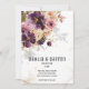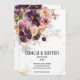 Un moderno y elegante ramo de flores color burdeos violeta y acuarela malva con su sombra que se derrama suavemente en la invitación y sus brillantes salpicaduras y elementos dorados, con sus nombres en una letra moderna con una fecha numérica de boda debajo y un pequeño tipo de letra para los detalles. Esta lujosa invitación violeta violeta y malva es ideal para cualquier ocasión.