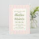 Esta invitación casera rosa pastel a rayas combina un toque divertido y caprichoso con una atmósfera retro intemporal. Con una tipografía de estilo manuscrito en tonos verde suave y ondulados, es perfecto para parejas que planean una celebración romántica, de inspiración vintage o ecléctica. El sencillo fondo a rayas lo convierte en un lugar versátil para bodas primaverales, veraniegos o de temática pastel.