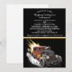 La invitación a la boda del fiesta Hot Rod tiene una llama naranja que se quema alrededor de un auto viejo. En la parte inferior a la parte central y en un fondo negro con un lugar donde poner todo el texto de la invitación. Este diseño único combina una invitación formal a la boda con un vibrante ilustracion de barra caliente. La sección superior muestra detalles para su nombre y la celebración de su nombre boda el "Sábado 18 de enero de 2010" en Vancouver, BC. Debajo, una potente barra caliente de colores brillantes con motor expuesto y tubos de escape avanza, creando un sorprendente contraste de temas. todo personalizable.