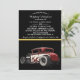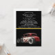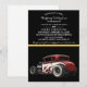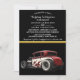 La invitación a la boda del fiesta Hot Rod tiene una llama naranja que se quema alrededor de un auto viejo. En la parte inferior a la parte central y en un fondo negro con un lugar donde poner todo el texto de la invitación. Este diseño único combina una invitación formal a la boda con un vibrante ilustracion de barra caliente. La sección superior muestra detalles para su nombre y la celebración de su nombre boda el "Sábado 18 de enero de 2010" en Vancouver, BC. Debajo, una potente barra caliente de colores brillantes con motor expuesto y tubos de escape avanza, creando un sorprendente contraste de temas. todo personalizable.