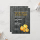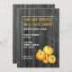 Invitación con un fondo de madera de pino en el frente y en la espalda. En el frontal se muestra el ilustracion de una pila de calabazas pequeñas y grandes en la parte inferior derecha con el efecto de pintura desbastada. Personalice el texto en blanco y Naranja con detalles de su ocasión.