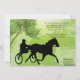 Un diseño de carrera de arnés perfecto para el cumpleaños de un entusiasta de las carreras de caballos o para una excursión de celebración. El fondo verde grunge incluye una silueta de caballo, un mandril y un conductor.La tarjeta es fácil de personalizar con su redacción, fuente, color de fuente y elección de seis tipos de papel.