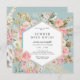 Invitación a casa abierta en formato digital o impreso perfecto para un agente inmobiliario o su propio arreglo. Guión elegante emparejado con hermosos ilustraciones florales sobre un fondo verde azulado claro. Consulta nuestra tienda para ver más opciones de invitaciones de la casa abierta.