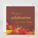 Elegantes tarjetas de invitación a bodas abstractas para celebraciones de otoño con sobres, decoradas con hojas caídas y elegantes rollos en colores cálidos para cosechas. Ilustracion © Teri Francis. Estampillas y tarjetas de felicitación a juego disponibles en la galería.