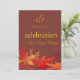 Elegantes tarjetas de invitación a bodas abstractas para celebraciones de otoño con sobres, decoradas con hojas caídas y elegantes rollos en colores cálidos para cosechas. Ilustraciones © Teri Francis. Estampillas de franqueo y tarjetas de felicitación disponibles en la galería.