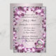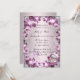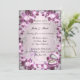 flores moradas de bonito sobre un fondo morado. Añade un toque especial enviando invitaciones al evento de cena que te llevará hasta tu gran día. Esta invitación a un ensayo de bonito es divertida para todos los invitados. Personalice la tarjeta cambiando el texto en los campos proporcionados delante y atrás. Puede cambiar el estilo de fuente, el tamaño y el color, así como el tipo y estilo de papel.