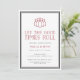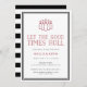 ¿Organizar una cena de boda relajada y no tradicional en su bolera local? Escoja estas divertidas invitaciones para el ensayo de la cena con bolas rojas con un efecto vintage, angustiado, doble borde negro y letras rojas y negras a juego. El diseño presenta elementos como "que los buenos tiempos se paseen" en la moderna tipografía roja con los detalles de la cena ensayada debajo.