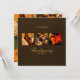 Moderna y elegante plantilla de cena de Acción de Gracias / invitación de fiesta con un colorido collage de fotos de cosecha autum, comida y hojas sobre fondo marrón. Personalízalo con tu propio texto en ambos lados o personalizar más si deseas ajustar el diseño y el texto o elegir un tamaño de invitación diferente.