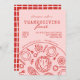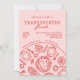 Celebra el Día de Acción de Gracias con la familia, amigos y seres queridos con nuestra única invitación a garabatos rojos y rosas. Este diseño presenta elementos del día de Acción de Gracias hechos a mano en un estilo rústico de color otoñal.