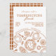 Celebra el Día de Acción de Gracias con la familia, amigos y seres queridos con nuestra invitación a garabatos hecha a mano por un naranja único. Este diseño presenta elementos del día de Acción de Gracias hechos a mano en un estilo rústico de color otoñal.