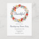 Invitación a la Cena de Acción de Gracias Corona de Agradecimiento ilustrada por Kathrin Legg en hermosos colores de otoño.
