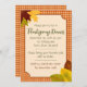 Invite a amigos y seres queridos a cenar con esta invitación rústica de Acción de Gracias inspirada en esta manta de picnic de gingham. Decoradas con hojas de otoño dibujadas a mano como si una fresca brisa errante las hubiera dispersado. El texto de esta invitación es totalmente personalizable, lo que lo hace perfecto para Acción de Gracias, Día de Amistad o cualquier reunión temática de otoño que te guste tener.