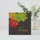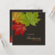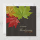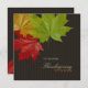 Moderna y elegante cena de Acción de Gracias / plantilla de invitación de fiesta con colorido tema de otoño con hermosas hojas de arce rojo, naranja y verde sobre fondo marrón chocolate. Personalízalo con tu propio texto en ambos lados o personalizar más si deseas ajustar el diseño y el texto o elegir un tamaño de invitación diferente. También están disponibles sobres y sellos coincidentes: