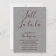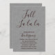 Esta invitación a la cena de Acción de Gracias se acentúa con la divertida cita, Fall la la la, en un fondo ilustrado de lino gris, lo que lo convierte en una elección simple y elegante para el Día de Acción de Gracias.