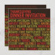 Esta fresca Invitación a la Cena de Acción de Gracias muestra solo una tipografía genial con muchas palabras relacionadas con el día de gracias. Cuenta con un pequeño rincón detrás para añadir detalles de invitación. Muy divertido para un moderno y fresco Día de Acción de Gracias.