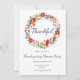 Thanksending Dinner Invitation Thankful Wreath ilustrada por Kathrin Legg en hermosos colores otoñales.