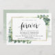 Eucalipto verde, comamos y ensayemos, Boda de la carta de invitación a la cena. ¿Planeando una celebración de la cena de ensayo boda con la futura novia y el futuro Groom, antes de su GRAN día? Invite a los huéspedes con esta carta de invitación a la cena de Boda rústico. Añade tus detalles de la cena de ensayo en letras y letras negras. Teesha Derrick