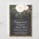 Invitación de compromiso de pizarra de tiza con brillo floral de invierno