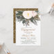 Invitación de compromiso de vacaciones con flores de invierno y brillo