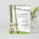 Un encantador diseño al aire libre para un fiesta de cena informal al aire libre. La carta cuenta con árboles con coloridas banderas y un cocinero que sirve la "cena de ensayo" en una bandeja. ¡Es increíble y divertido!
