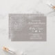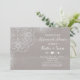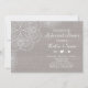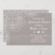 Invitación a la cena, de estilo rústico, con fondo de burpón gris y encaje blanco.
