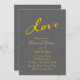 El amor, escrito en un falso pincel de oro, decora esta invitación a la cena de ensayo con un fondo ilustrado de lino gris. Esta invitación se muestra en el papel básico; sin embargo, recomiendo el peso y la textura del papel de lino, ya que mejora el aspecto del fondo ilustrado de lino de esta invitación. Esta invitación es parte de la Colección de Bodas de amor en línea gris. si se necesitan elementos de coordinación adicionales, simplemente contáctenos a prettyfancyinvites@gmail.com con su solicitud.