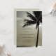 Invite a los huéspedes a su fiesta de playa antes del matrimonio con la invitación de la cena con el ensayo de bodas Palm Tree Silhouette Beach. Esta cena de boda temática con trópicos personalizados incluye una fotografía de la naturaleza de una palmera de silueta en la costa del océano.