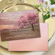 Una romántica invitación a la cena con un cuadro de un paisaje fantástico con un cerezo en flor. Hermoso para una celebración de huertos o al estilo japonés.
