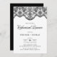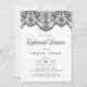 Invitación a la cena de ensayo de encaje marroquí negro Invitación elegante y ornamentada con un diseño de encaje marroquí y fuente de caligrafía.