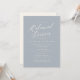 Invite a amigos y familiares a su cena de ensayo con esta sencilla invitación azul polvoriento.