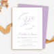 Una invitación a la cena, sencilla y dulce. Presenta elementos botánicos dibujados a mano en un impresionante color lila. Vea los otros elementos coincidentes de la colección Boda de Flor silvestre.