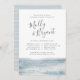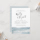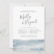 Nuestras elegantes invitaciones para el boda de verano ofrecen un estilo náutico clásico con un aspecto limpio y minimalista. El diseño presenta una acuarela a lo largo de la parte inferior en azul gris pálido, con el ensayo de la ceremonia y los detalles de la cena en una combinación de moda de tipografía de escritura en bloques, cursiva y con letras a mano. Perfecto para cenas náuticas o de verano. Las invitaciones se revertirán a rayas onduladas dibujadas a mano en tono de color azul-verde.