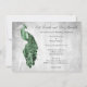 Invite a los huéspedes a su cena de ensayo con una invitación a cenar al boda de pavo real verde esmeralda. El diseño de la invitación presenta un pavo real elegante con un delicado follaje y un fondo de grano. Personalice los nombres del novio y la novia junto con los detalles del ensayo de la cena. También hay material de boda adicional disponible con este diseño.