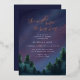 Invitación a la cena para ensayar con una pintura al cielo acuarela con estrellas de Relieve metalizado oro rosa y texto de escritura. Personaliza con tus propios detalles.